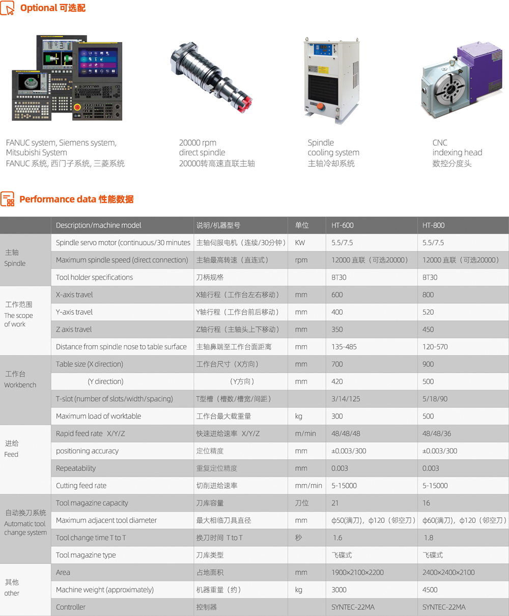 高速伺服換刀快速穩定減少非加工時間(特殊配置)。