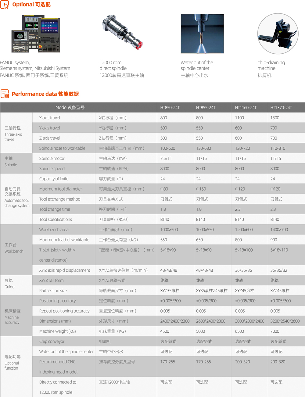 三軸36—48m/min,高速位移可節省非加工時間,大幅提高加工效率和保證加工光潔度。